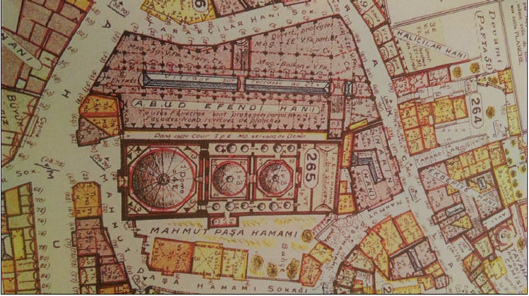 As the first grand vizier complex built after the conquest of Istanbul, the Mahmut Pasha Complex is one of the most important architectural groups of the 15th century, following the Fatih Complex. Since it is located in a densely built commercial area, the complex has been surrounded by later constructions over the centuries and has lost many of its original components. Today, the complex consists of the mosque, the tomb, the bath that lies outside the original unity of the complex, and the Kürkçü Han, which has largely disappeared among other commercial buildings.